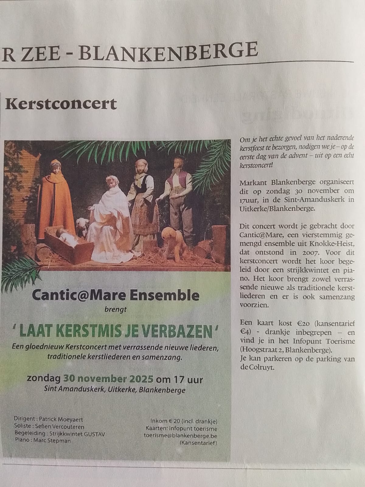 Ons concert van zondag 30 november werd aangekondigd in het Parochieblad.